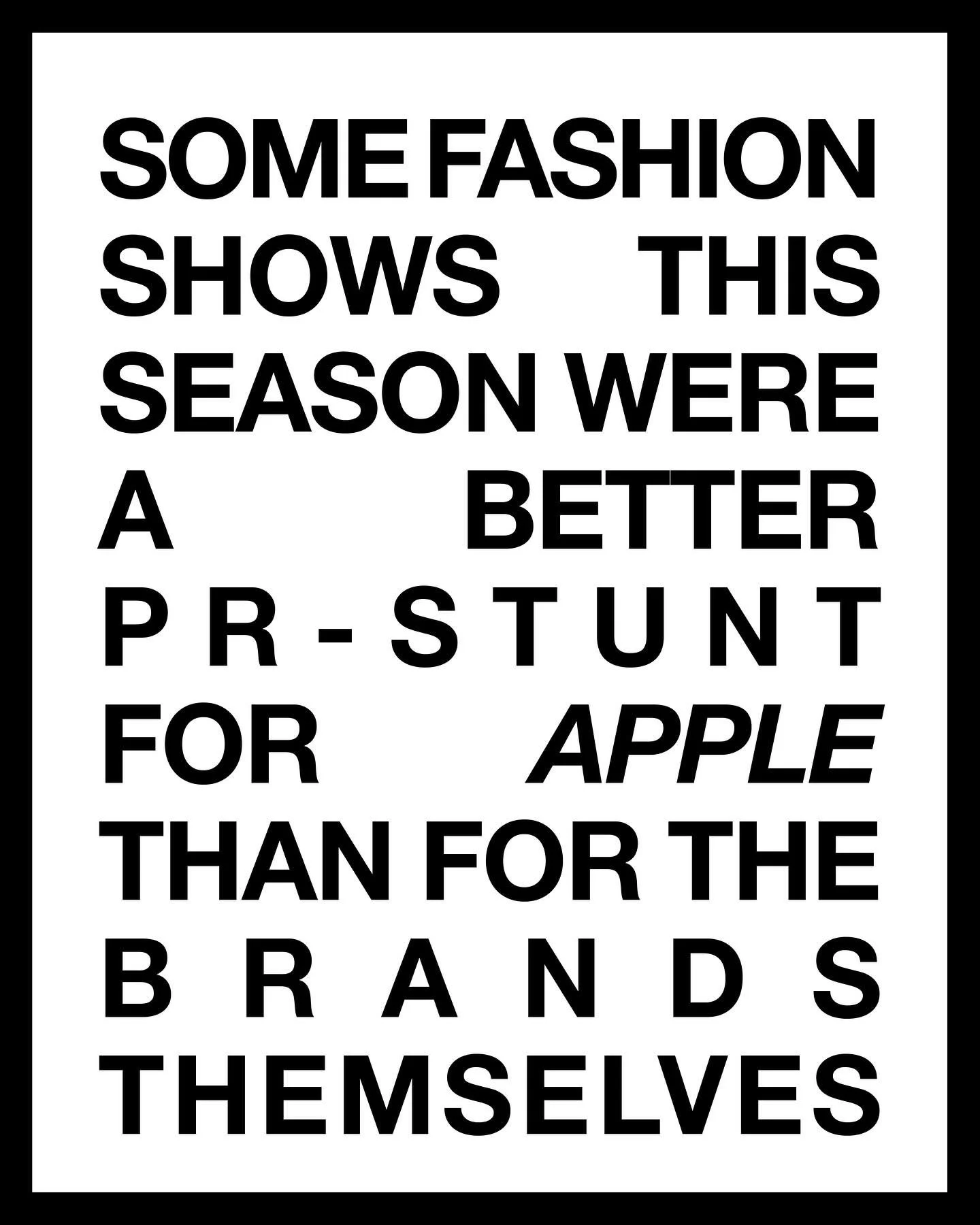 View fullsize Some fashion shows this season were a better pr-stunt for Apple than for the brands themselves