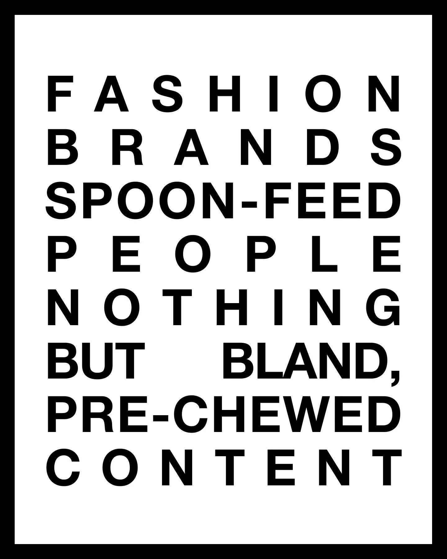 View fullsize Fashion brands spoon-feed people nothing but bland, pre-chewed content.