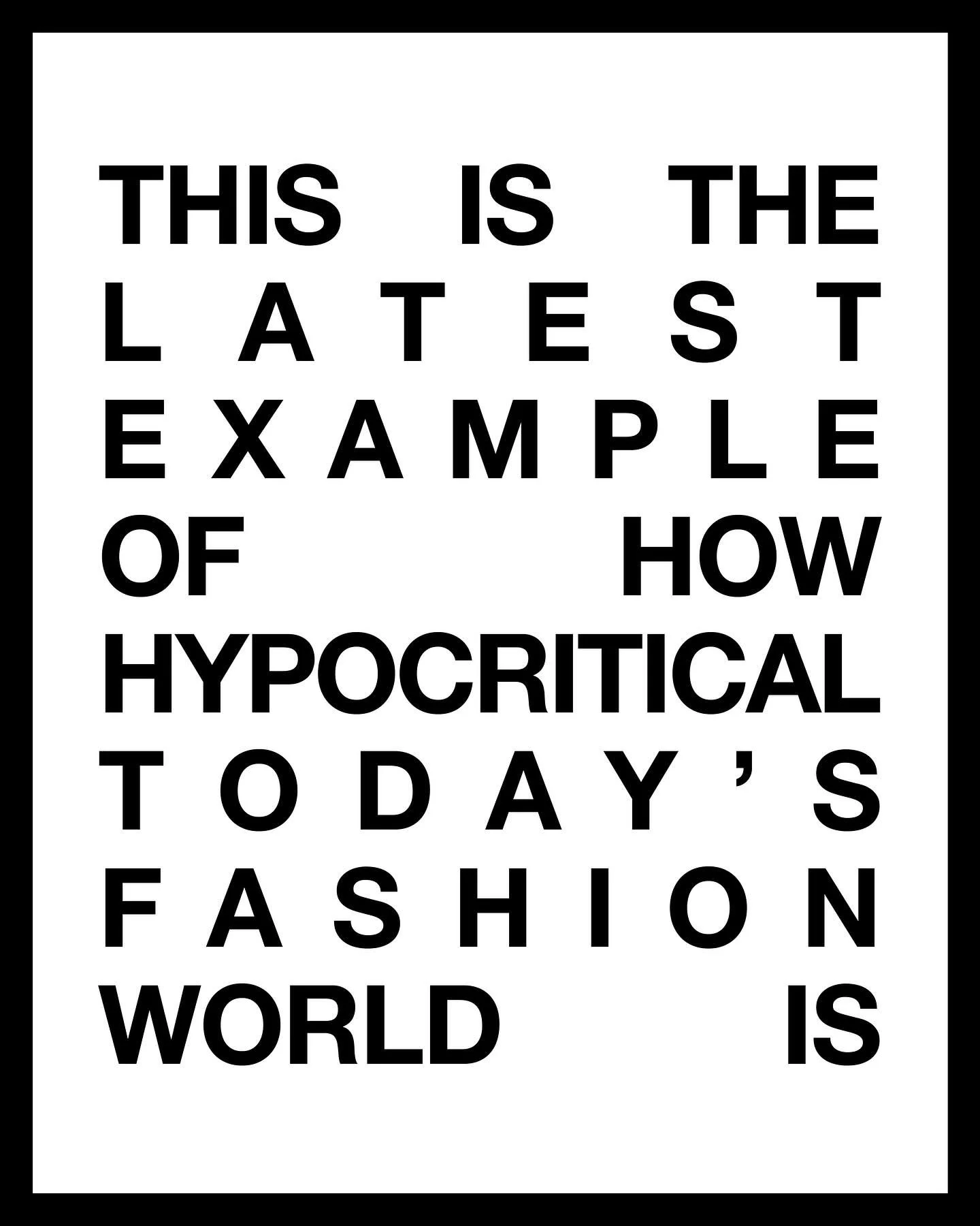 View fullsize This is the latest example of how hypocritical today’s fashion world is: