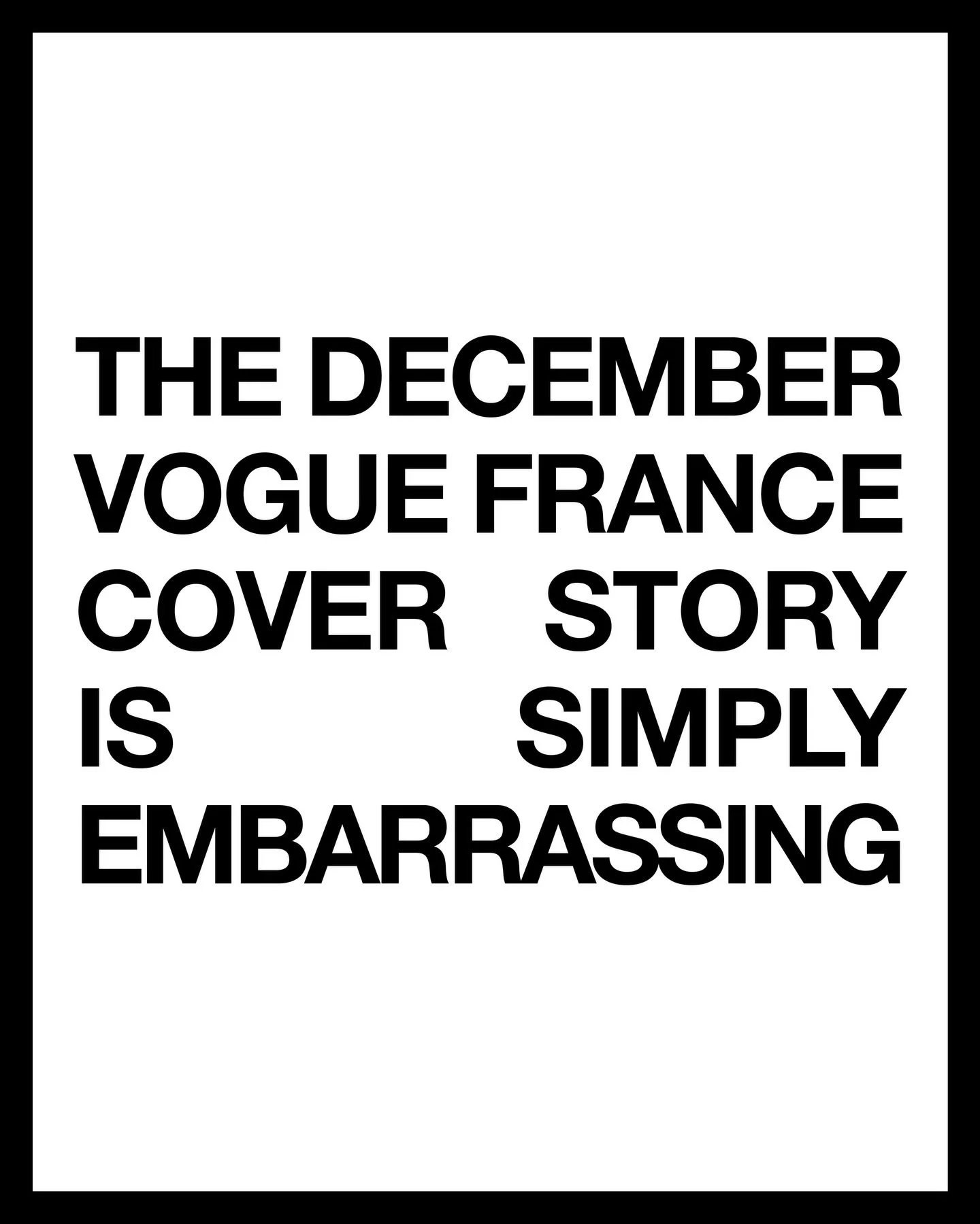 View fullsize The December Vogue France cover story is simply embarrassing.