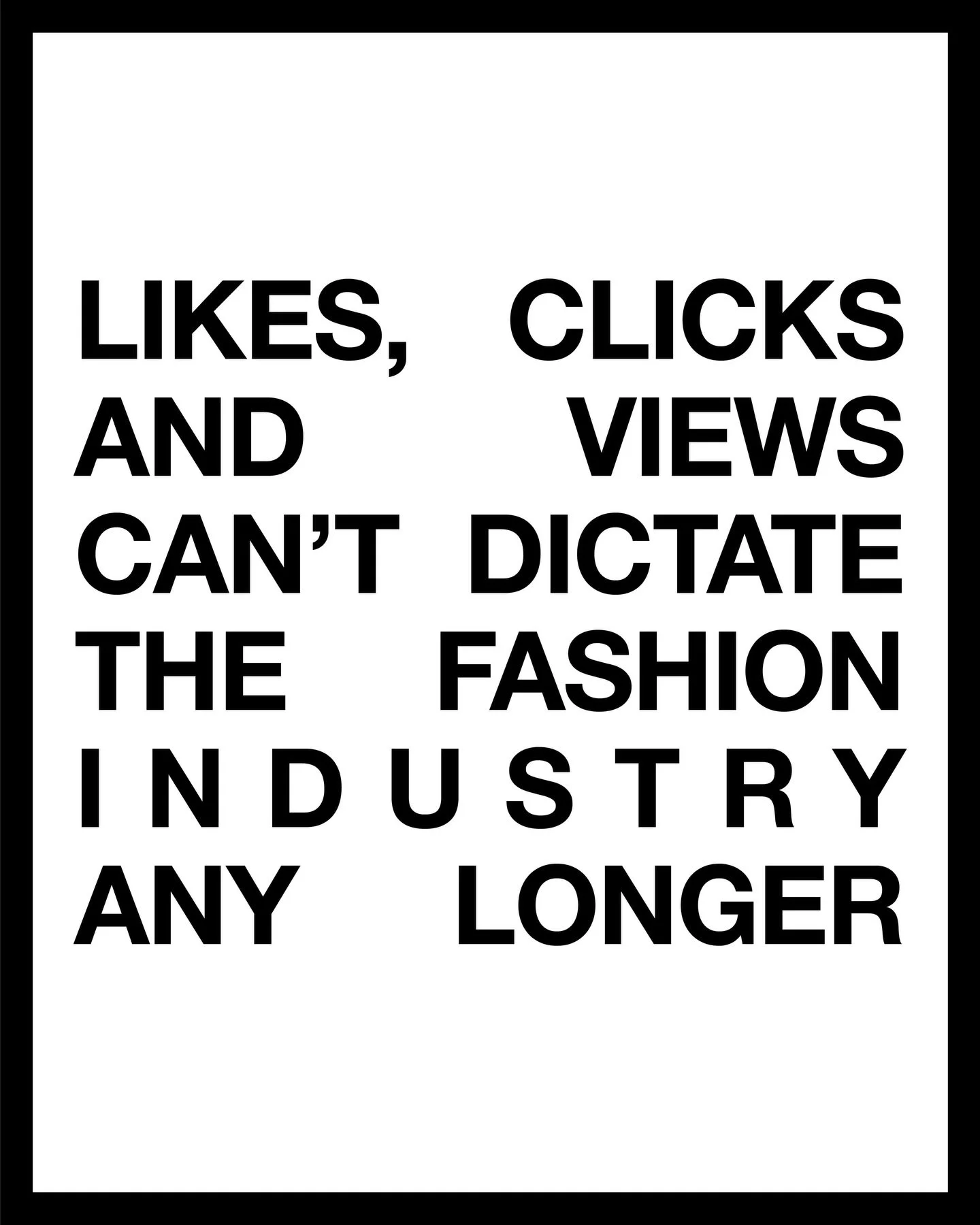 View fullsize Likes, clicks and views can’t dictate the fashion industry any longer.