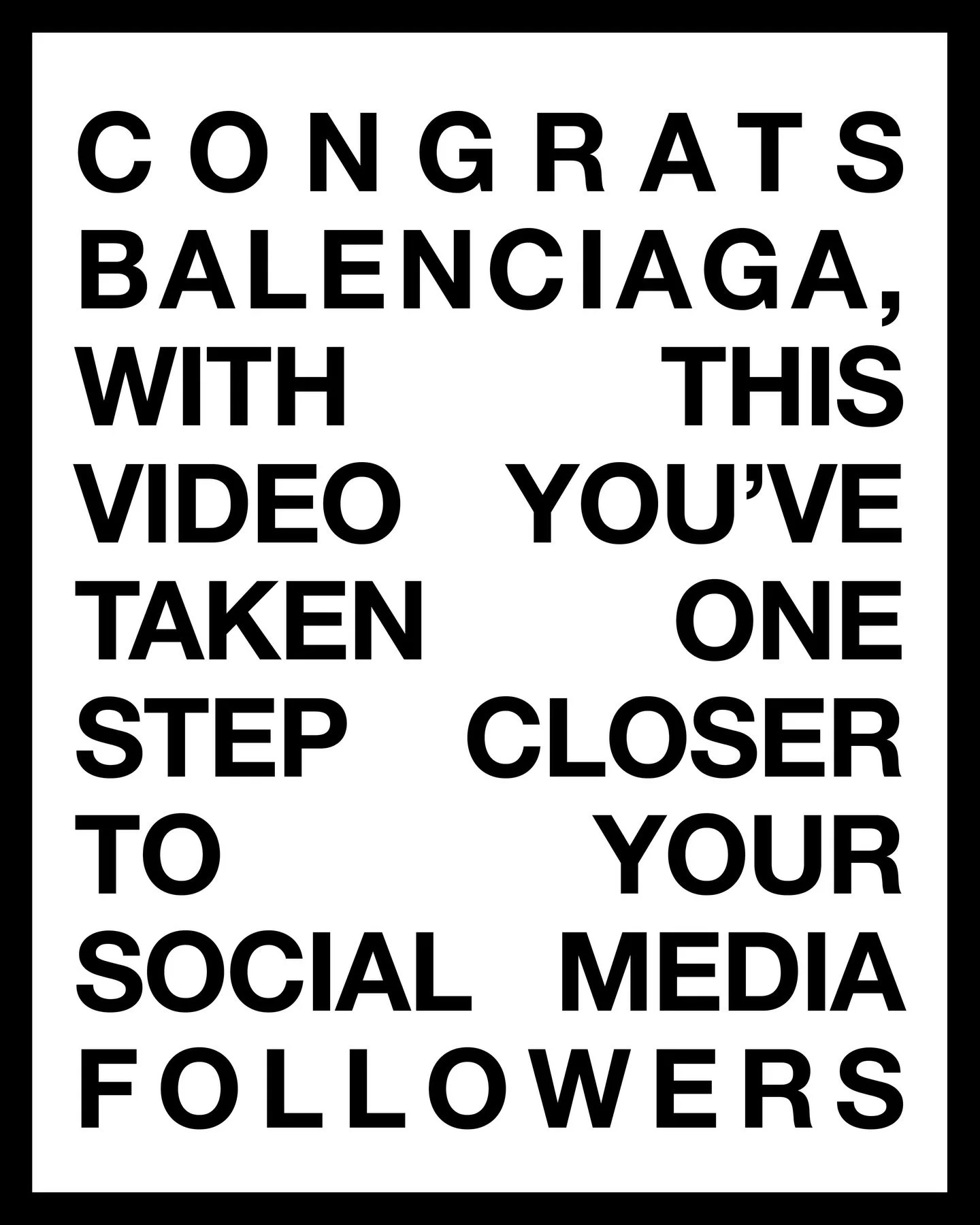 View fullsize Congrats Balenciaga, with this video you’ve taken one step closer to your social media followers and another step further away from the actual fashion community