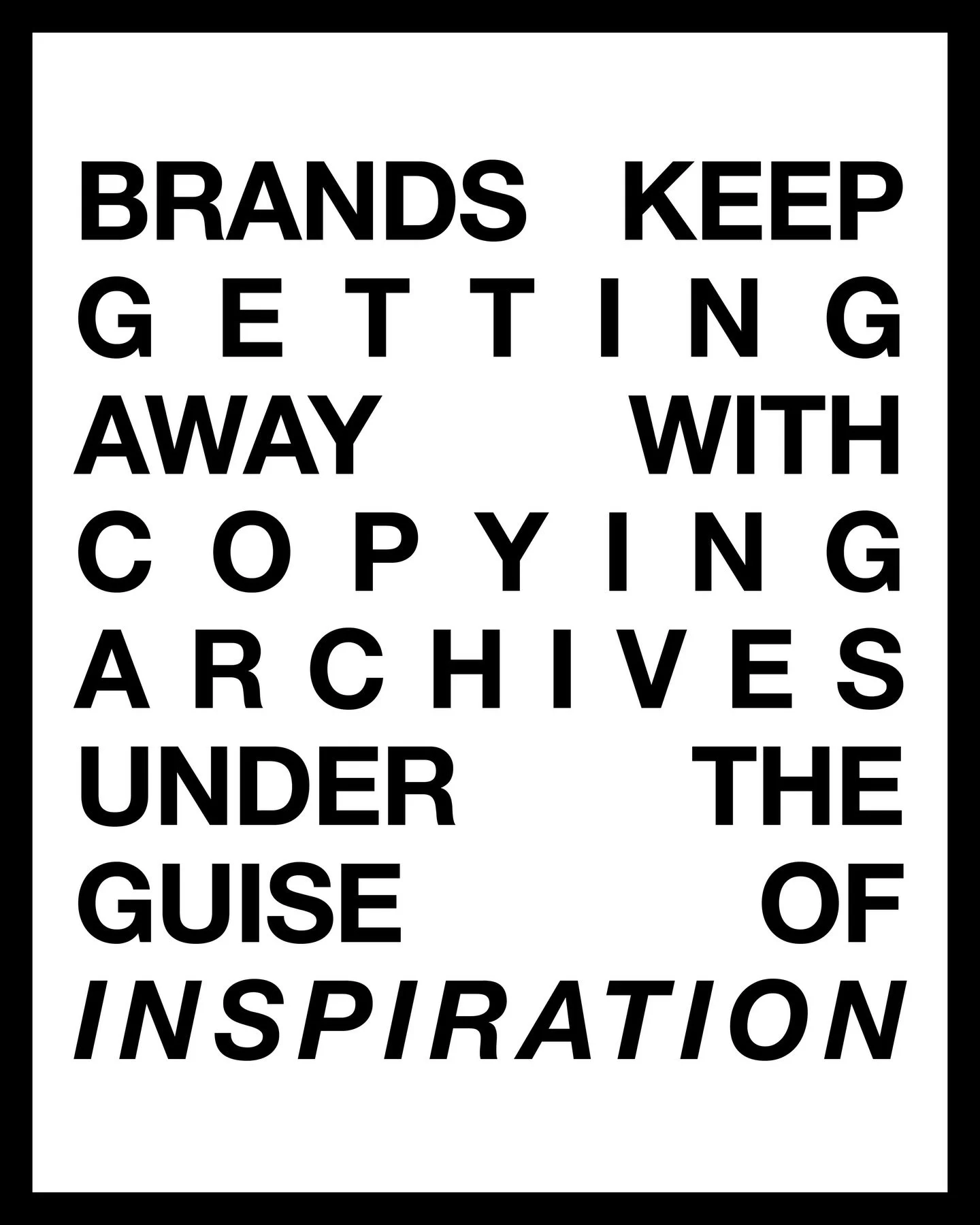 View fullsize Brands keep getting away with copying archives under the guise of inspiration.